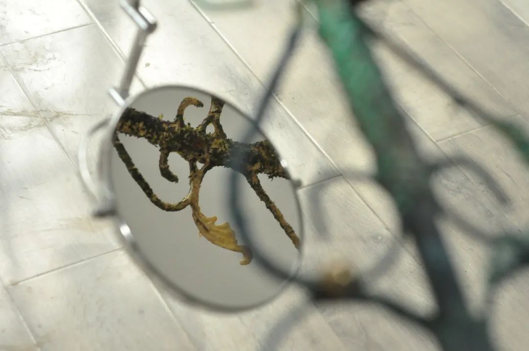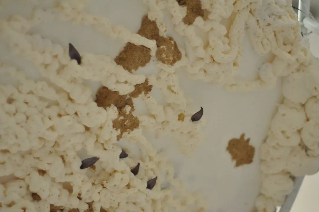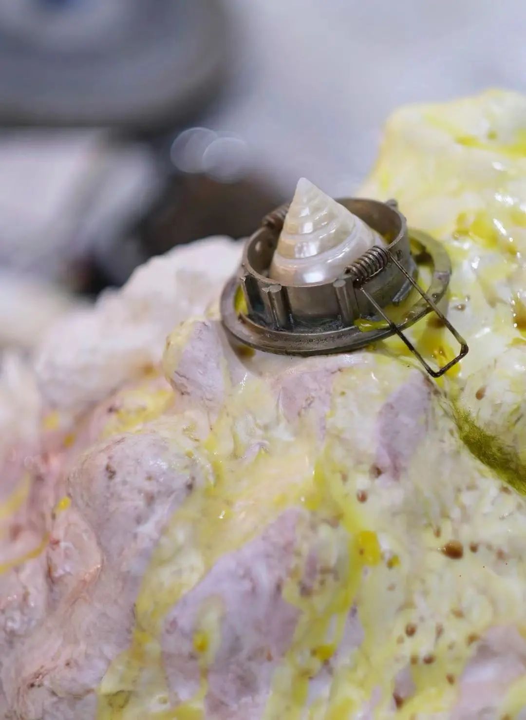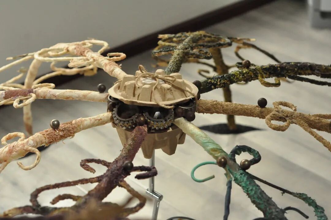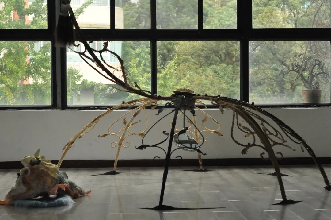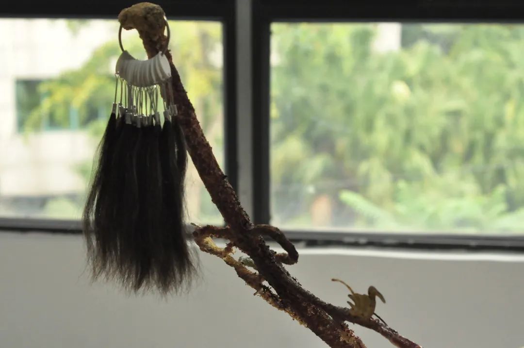 艺术家秦畅在成都AVG空间两个月的驻留结束后,呈现“双螺旋漫步”个展。骨骼钢架的镂空纹样投射出的光影和油脂的湿度让人产生呼吸感,肠衣的气味使人略感不适,苔藓上木漆的颜色增强氛围感。扁平化的地球,也是有正反两面。透过右下角的空洞,可以看到另一片花花世界。永远不会凋谢的金花与已经干枯折断的残花,体现着材料本身的属性。对于现成品的艺术化处理,使得符号产生时间错乱。